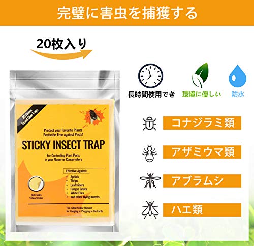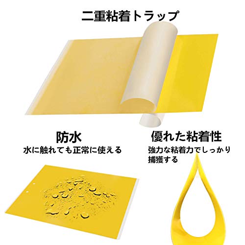 Kodi害虫捕獲粘着紙 粘着トラップ 捕虫シート ハエ取り 害虫対策用品 強力 防水 安全無毒 簡単取付 コナジラミ アザミウマ アブラムシ ハエ 蜂 蚊除け 室内外対応 黄色 15*20cm 20枚