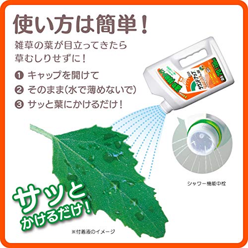 なお、シャワータイプのラウンドアップマックスロードALⅢには速やかに長期で雑草を枯らす効果がありますが、今生えている雑草を枯らすには、葉を濡らすだけで充分です。植物に水を与える感覚で根本まで散布しても効果はあがりませんので注意してください。(ただ、後から生えてくる雑草を抑制するためには、地面に丁寧にかける必要があります。)