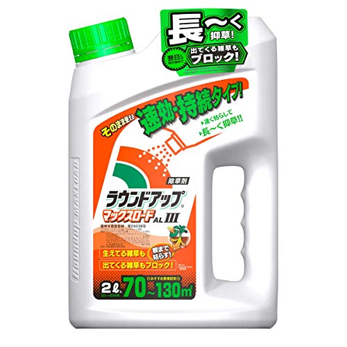 AL剤とはapplicable liquid剤の略で、そのまま使用できる濃度の薬液で製品化されたものです。シャワータイプとも呼ばれており、希釈タイプとは異なり、あらかじめ原液が希釈された状態で販売されており、商品の蓋を開けると、注ぎ口がシャワー状になっているのも特徴です。ラウンドアップマックスロードALシリーズとしてⅠ、Ⅱ、Ⅲと3種類の商品が発売されています。