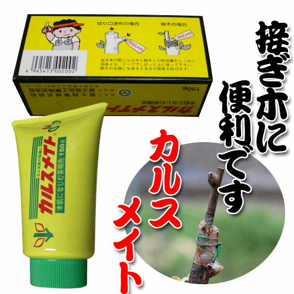 トップジンMペーストの代用品として代表的な薬剤の一つです。酢酸ビニルというポリマーが主成分で、殺菌成分は含まれておらず、切り口の保護・乾燥防止が目的となります。トップジンMペーストがオレンジ色であるのに対しカルスメイトは透明なので、観葉植物など、見た目に配慮したい場合に適しています。