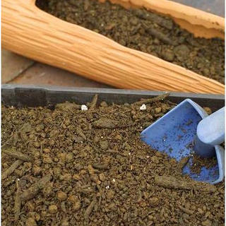 - 鉢底に鉢底ネットと鉢底石を敷き、鉢の1/3まで土を入れます。