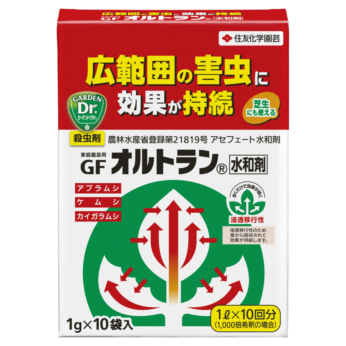 オルトラン水和剤は持続性のある殺虫剤です。草花・庭木・野菜や果樹などのハマキムシに対して効果があります。ハーブは適応ではありません。水でうすめて散布します。葉や茎から薬剤が吸収されて植物内にゆきわたるので、ハマキムシに直接薬剤がかからなくても効果があります。商品の使用方法、回数などをよく読んで使いましょう。
