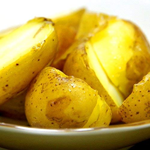 切ると断面が黄色である特徴を持つじゃがいもです。この果肉色の正体ですが、強い抗酸化作用をもつカロテノイド系色素によるものです。この色素にはゼアキチンサンという成分が元になっており、その量はキタアカリの約7倍とも言われています。また、少し高価な印象があると思いますが、これはそもそも収穫量が少なめで休眠期間が短いことにより保存性が低いことが原因のようです。