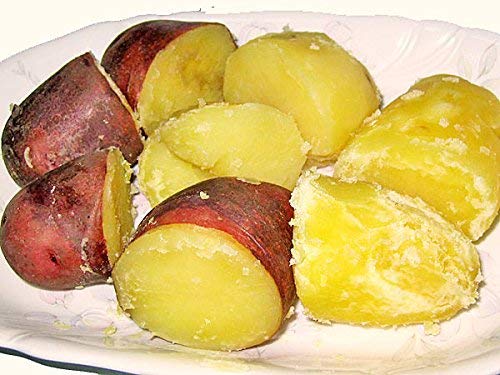 赤皮で果肉は白色です。粉質系は皮が剥きにくいイメージがありますが、こちらはそうではありません。また、火の通りが早く蒸し時間も短縮でき、栄養価でもビタミンCが豊富です。