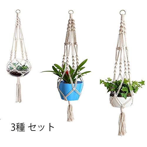 麻縄 植木鉢 屋外屋内植物ハンガーマクラメ プラントハンガー 観葉植物 吊り下げ ロープ ハンギングプランター 3種セット