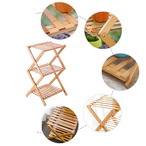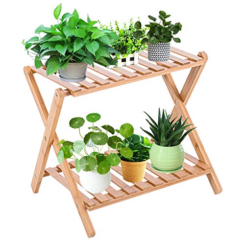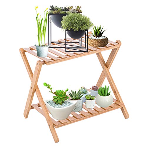 Wholehot 折りたたみ フラワースタンド 花台 2段 竹製 植木鉢台 マルチラック 植物 フラワー ガーデニングラック 鉢植え 鉢置き スタンド 多層盆栽棚 展示棚 頑丈 室内室外 インテリア