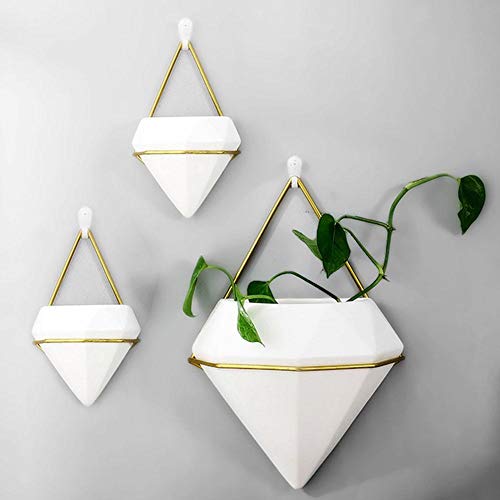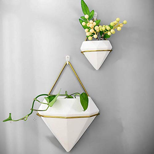 多肉植物 サボテン鉢 フラワーポット 水耕陶磁器の植木鉢 - 革新的なプランター容器 花鉢 、鉄フレーム 壁掛け装飾