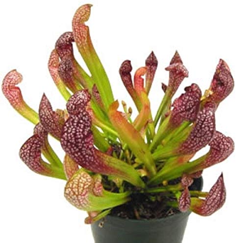 サラセニアは種間の交配が比較的簡単なことから、自然交雑種も多く、また、古くから人工的にさまざまな交配種が作られてきました。原種同士の掛け合わせだけでなく、交配種同士の掛け合わせも行われており、たくさんの品種が生み出されています。いくつかの交配種を紹介します。