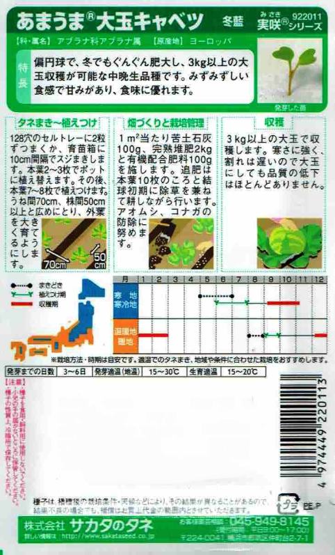 キャベツは露地栽培・プランターとともに栽培が可能です。プランターで育てるときは、キャベツの株間は45cm必要なため、複数の株を植えるときは60cm以上の大ききめのプランターで管理し栽培してください。プランターのサイズが小さすぎると、株が窮屈になります。