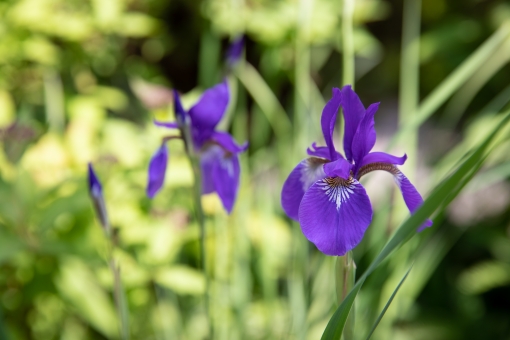 アヤメは紫色や白色、黄色や青色の花を咲かせる、日本が原産の多年草です。約60cmまで成長し、5月〜6月の開花時期には、花弁が垂れ下がった特徴的な咲き姿を楽しめます。