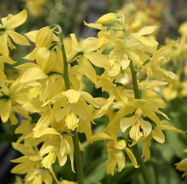 キエビネ(黄海老根)は、紀伊半島以西、四国、九州に分布しているエビネの原種です。名前どおりの黄色い花を咲かせます。春咲き原種のなかでは、もっとも大きい花をつける品種です。満開時には、直径5cm前後の花を10個~15個つけます。育てやすい品種ですが、寒さに弱いので防寒対策が必要です。キエビネを交配親とする園芸品種には、ジエビネとかけあわせて生まれた「タカネ」があります。