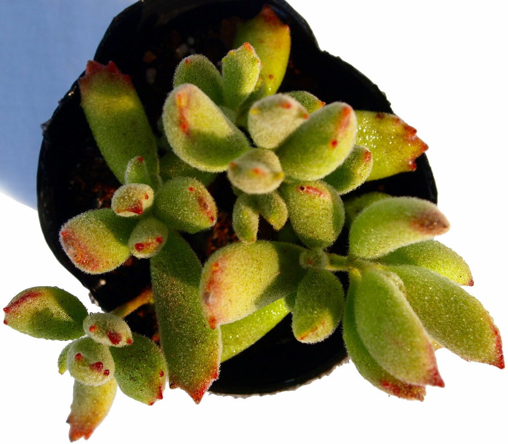 ふっくら、ふわふわとした葉の見た目が、さながら子熊の手のようであることから「熊童子(くまどうじ)」と名付けられました。英語でもBear's Paw(熊の手の平)と呼ばれています。