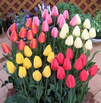チューリップは品種によって早咲き、普通咲き、遅咲きの3種類に分かれます。寄せ植えでチューリップの品種を複数使うときは、咲く時期が同じ品種を揃えるとよいでしょう。