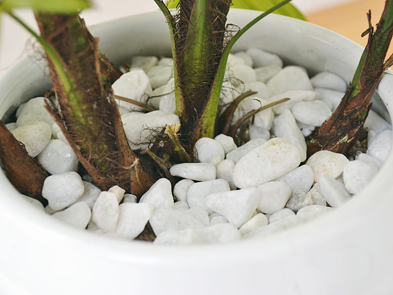 シュロチクは、鉢植えにするのが育てやすく、数年ごとに鉢増ししながら大きく育てると見映えがします。暖地や、強風の吹き込まない坪庭のような場所では庭植えも可能です。