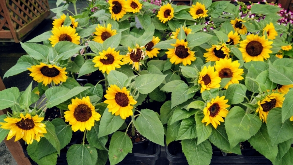ミニひまわりは管理や手入れが簡単で比較的丈夫な植物のため、小学校で栽培用の教材としても利用されています。通常の大きなひまわりと茎や葉、花の色などは同じですが背丈が低く、咲き姿が小ぶりなのが特徴です。花壇の寄せ植えやフラワーアレンジメントにも人気があります。