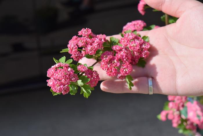 八重紅サンザシは、名前のとおり八重咲の紅色の花を咲かせる品種です。八重咲の品種は結実しないため、食用として楽しみたい人は注意してください。小さな花がいくつも重なって咲く姿は花火のようにきれいで、盆栽やシンボルツリーとしても人気があります。