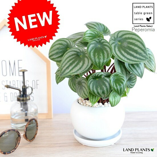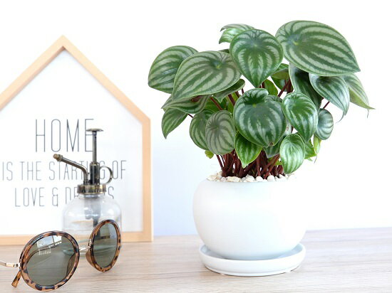 ペペロミア (サンデルシー) 白色 丸形 陶器鉢 スイカペペロミア アルギレイア スイカぺぺ ペペ スイカ 多肉質の植物 鉢植え 陶器 白 ホワイト 苗 苗木 観葉植物 スイカ柄 サダソウ属 佐田草属