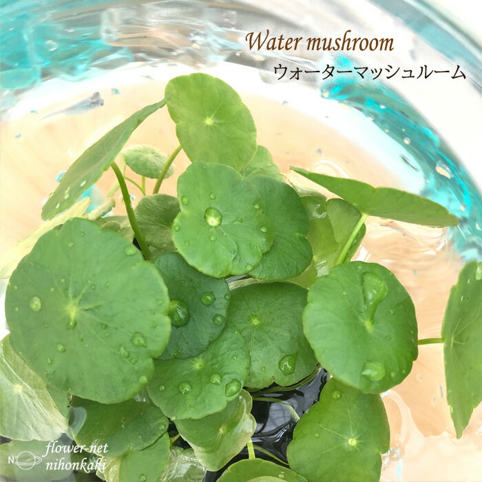 ウォーターマッシュルームという名前は、円形の葉をマッシュルームの傘に見立てたことに由来します。直径4cmほどの円形の葉がコインのように見えることからウォーターコインとも呼ばれます。