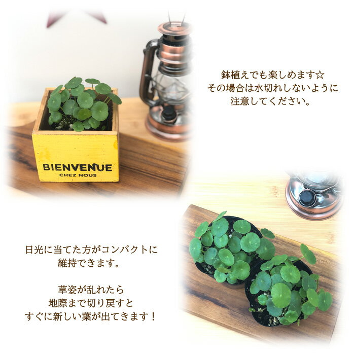 9cmポットにはいったウォーターマッシュルームの苗です。そのままアクアリウムやビオトープなどに利用できるので使いやすい形状です。形が乱れたときは地際まで切り戻すと新しい芽が出てきます。