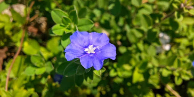 アメリカンブルーは元々「多年草」ですが、寒さにやや弱く、日本の環境では冬がくる前に枯れてしまうため「一年草」に分類される場合もあります。開花時期が長く、4月〜10月にかけて1cm〜3cmほどのかわいらしい花を次々と咲かせるのが特徴です。