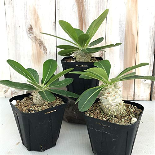 パキポディウム・グラキリウスは、パキポディウムの仲間のみならず、塊根植物全体のなかで絶大な人気を誇ります。丸く太った球状の塊根部が特徴で、黄色い花を咲かせます。現地で採取された個体と、国内で実生された個体が流通していますが、個体差が激しいのでお気に入りの株を選んでください。