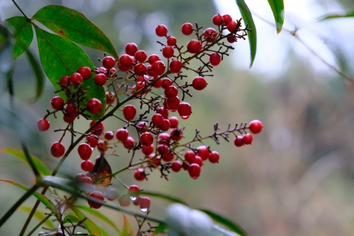 風鈴は、秋が近付くと真っ赤な実をたくさんつけるのが特徴です。垂れ下がるように実をつける様子から「風鈴」と名付けられました。