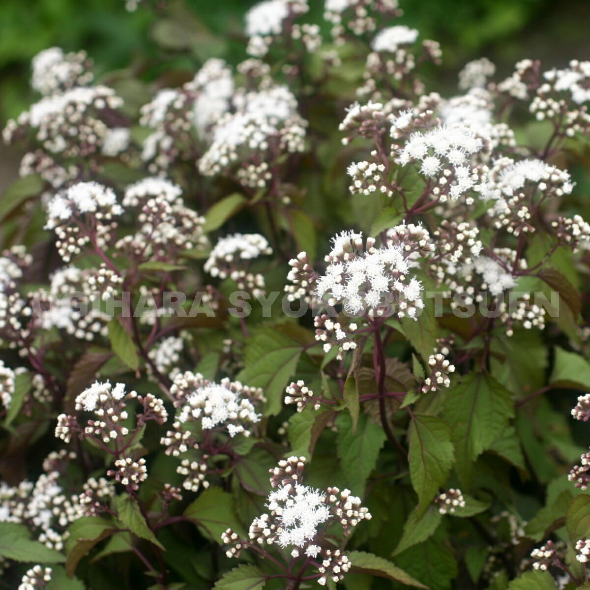 ユーパトリウム・チョコレートは、茶色がかった葉と茎がシックな宿根草です。秋には真っ白な花をたくさん咲かせ、長期間楽しめます。育てやすく、初心者にもおすすめの植物です。属名がアゲラティナ属に変更されましたが、以前はユーパトリウム属であったため、旧属名のまま「ユーパトリウム・チョコレート」で流通しています。
