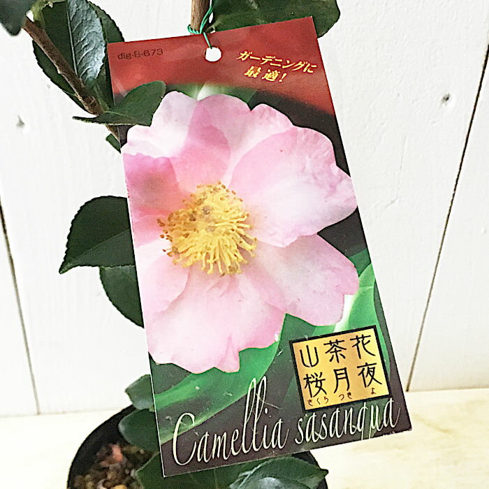 桜月夜(さくらづくよ)は、サザンカ系の淡いピンク色の品種です。一重~半八重咲きの可憐な花が魅力的です。