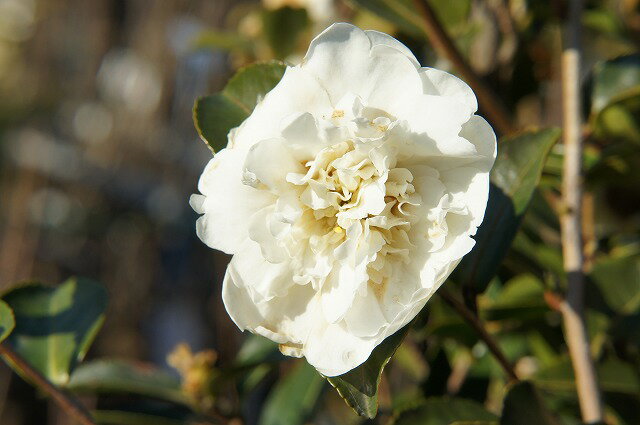 富士の峰(ふじのみね)は、カンツバキ系の八重咲き~千重咲きで、明治初期に広まったといわれています。白色の柔らかな花びらに気品がある人気品種です。