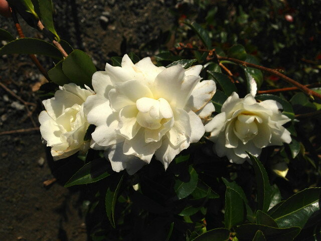 サザンカには300種ほどの多くの園芸品種があり、3つのグループに大別されます。原種に近いサザンカ系は11月~12月に開花します。椿との自然交雑といわれるカンツバキ系は12月~1月に咲き、ヤブツバキなどと交配したハルサザンカ系は1月~3月頃に開花する遅咲きの種類です。