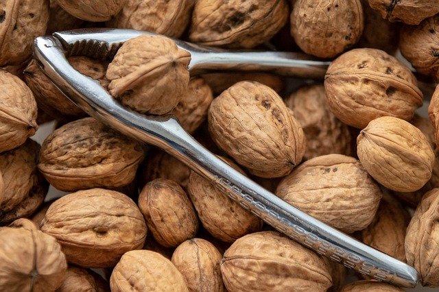 クルミの実の収穫時期は、9月の下旬~10月中旬です。熟すと青色の外皮が破れて、殻つきの実が見えてきます。果実は3~5cmくらいの大きさで球体です。自然に落下したものや棒などを使って落としたものを収穫します。収穫後は外皮を取り除き、殻を割ってから中身を取り出し食用にしましょう。