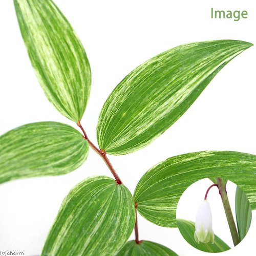 覆輪アマドコロは、葉の外側にクリーム色の斑が入っているのが特徴です。アマドコロの品種の中でも開花時期が長く、4月下旬〜6月上旬まで開花が楽しめます。フラワーアレンジメントや切り花のアクセントなどにも利用されている品種です。