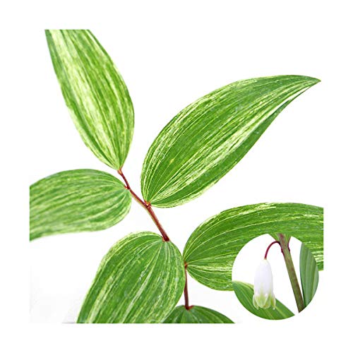 白縞斑(しろしまふ)アマドコロは、葉全体に白色のラインが入る品種です。花壇に爽やかな印象を与えてくれるのが魅力で、寄せ植えにも人気があります。