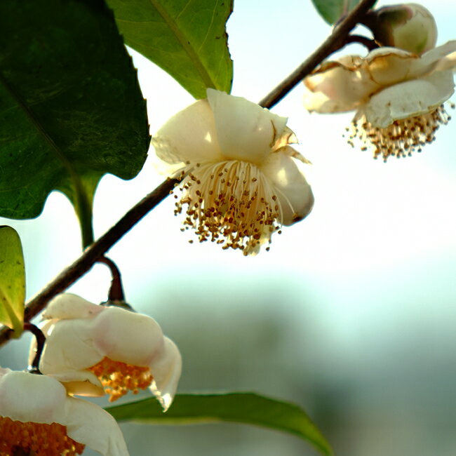 紅富貴は、紅茶の茶葉用に品種改良された品種で、開花時期には芳香が楽しめます。アッサム種に分類されており、大きな葉にはタンニンが多く含まれています。