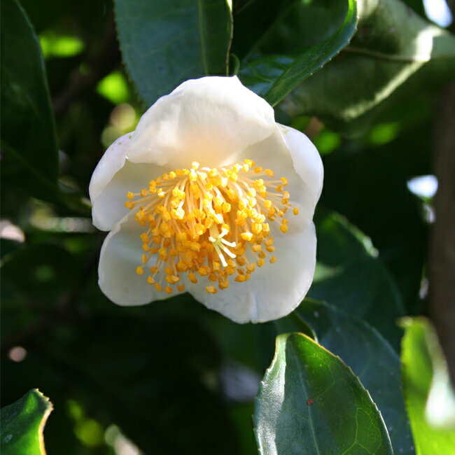 チャノキは中国やインド、ベトナムが原産の常緑性小高木です。ツバキ科ツバキ属に分類されており、10月〜12月にかけて真っ白なかわいらしい花を咲かせます。庭木や鉢植えだけでなく、シンボルツリーや生垣にもおすすめの植物です。