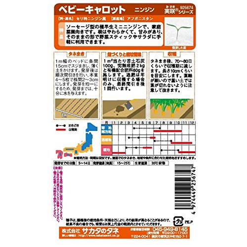ベビーキャロットは人参の小型品種で、収穫時期になっても10cmほどの大きさにしかなりません。そのため「ミニ人参」や「ミニキャロット」とも呼ばれている品種です。甘みが強く、サラダやスープにするとおいしく食べられます。種をまいてから70日〜80日という短期間で収穫できるため家庭菜園にも人気です。